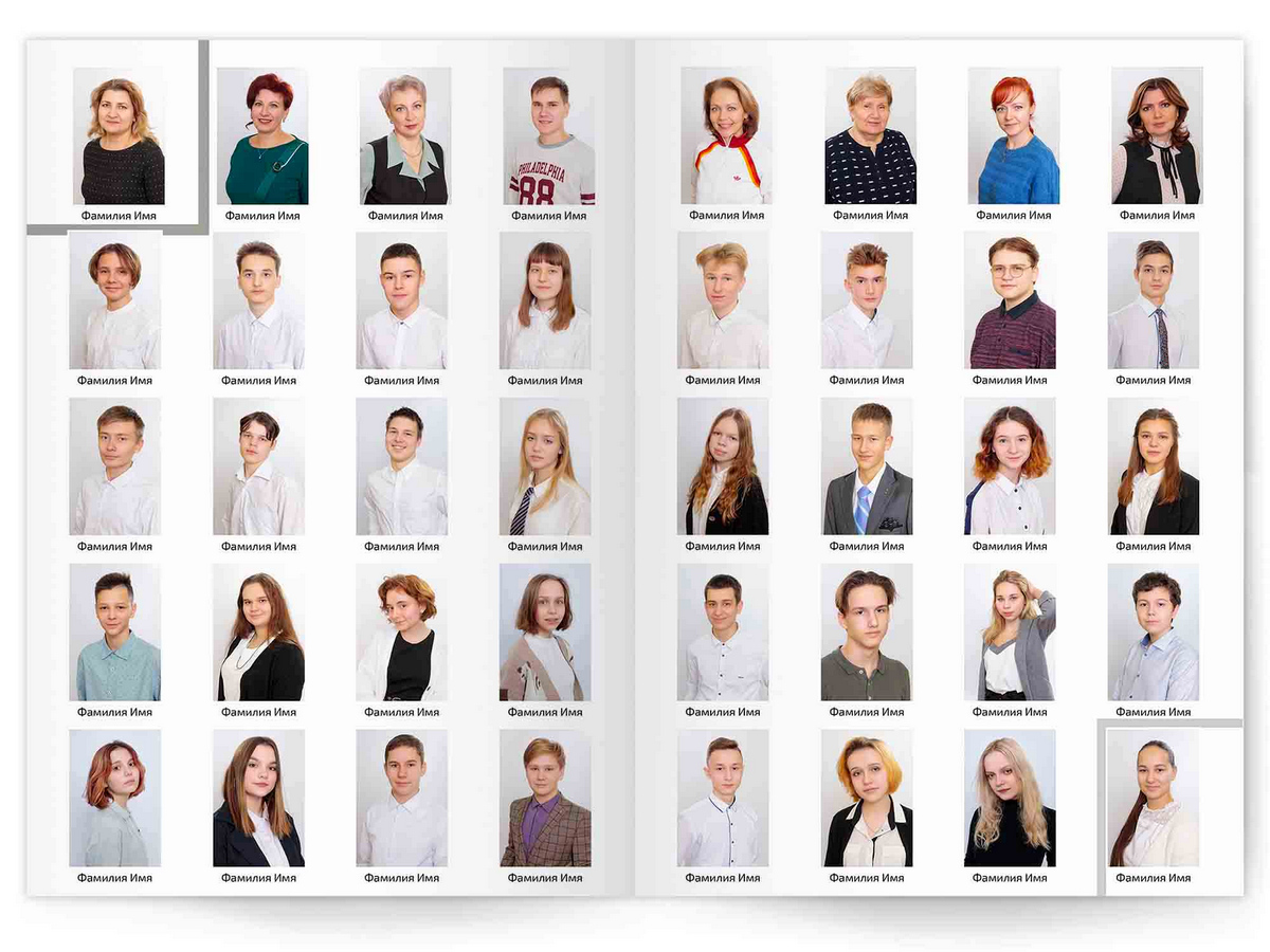 • Портреты всех одноклассников на развороте
