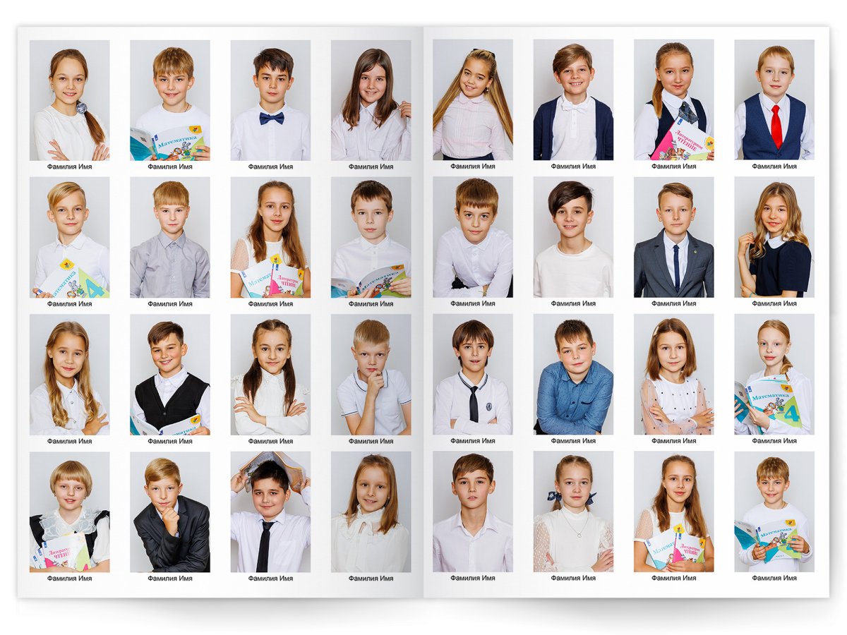 • Портреты всех одноклассников на развороте