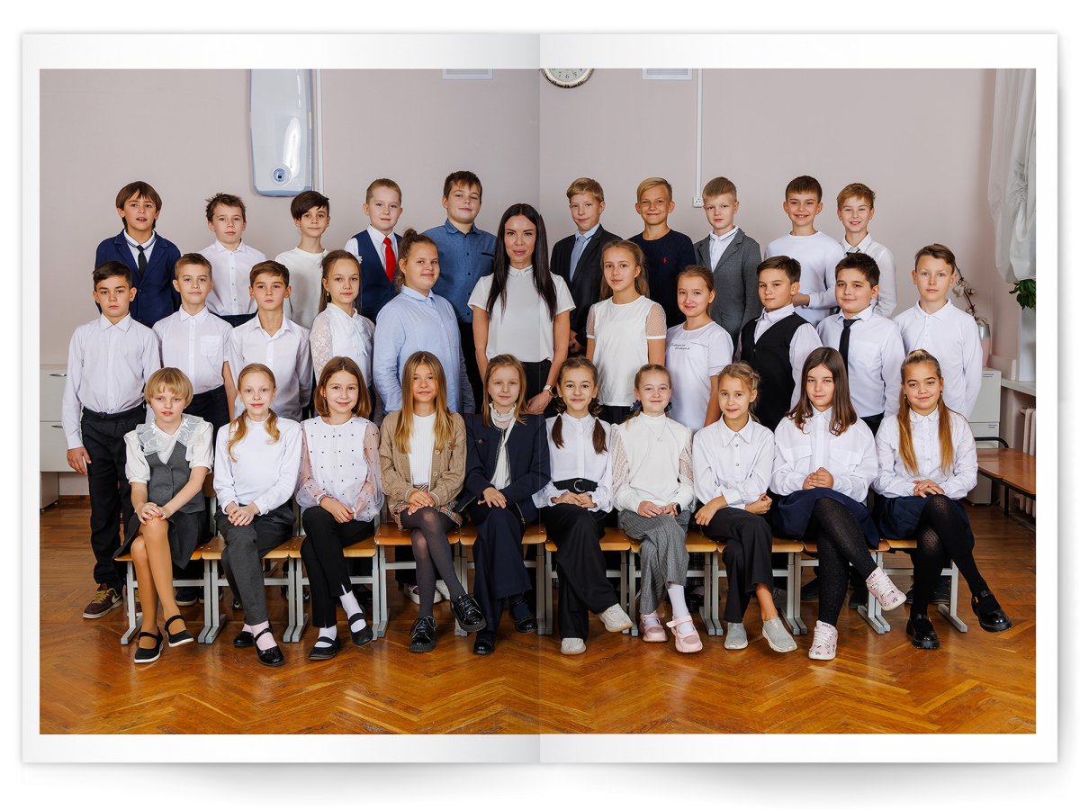• Можно добавить общее фото всего класса на разворот +350 ₽