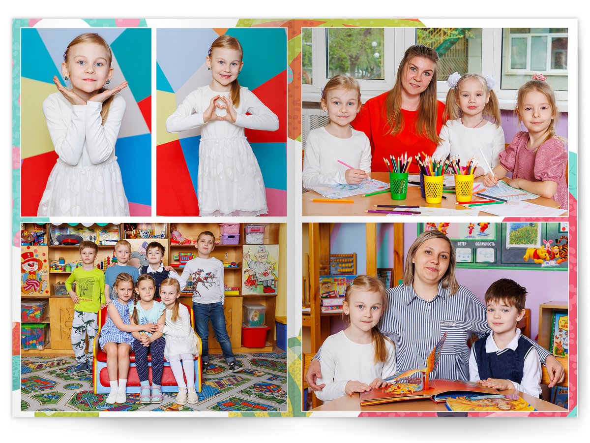 • Портреты всех детей и воспитателей на развороте