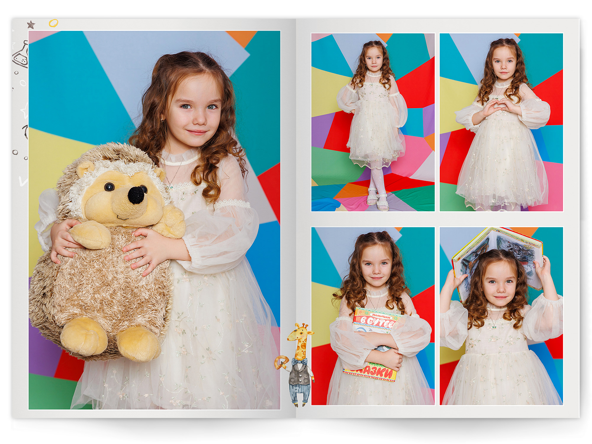Мы предлагаем уникальные выпускные альбомы для детей, оканчивающих детский сад. Мы даем родителям возможность самостоятельно выбрать все фотографии для альбома своего ребенка. Наши профессиональные фотографы проводят съёмку в детском саду, а затем тщательно обрабатывают полученные изображения, чтобы каждая фотография выглядела идеально.