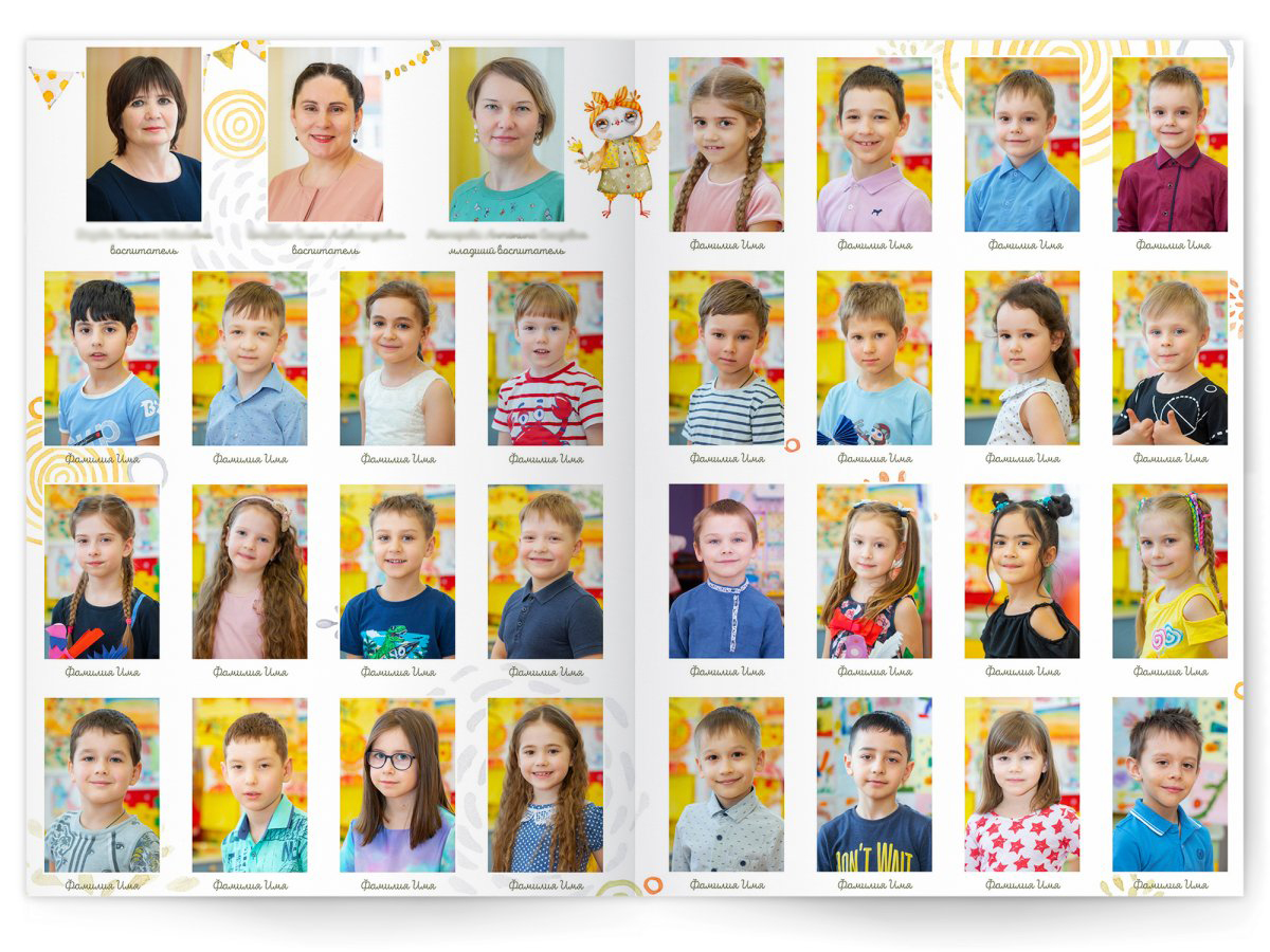 - Портреты всех детей и воспитателей на развороте