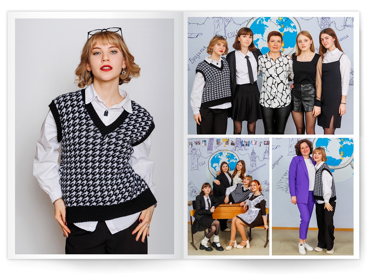 - Разворот с твоим портретом на всю страницу и от 2 до 4 фото на выбор
