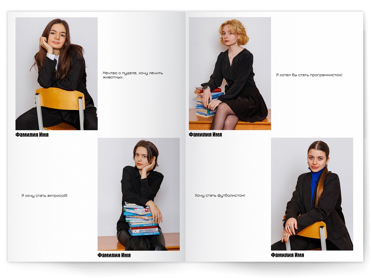 - Портреты всех одноклассников на развороте