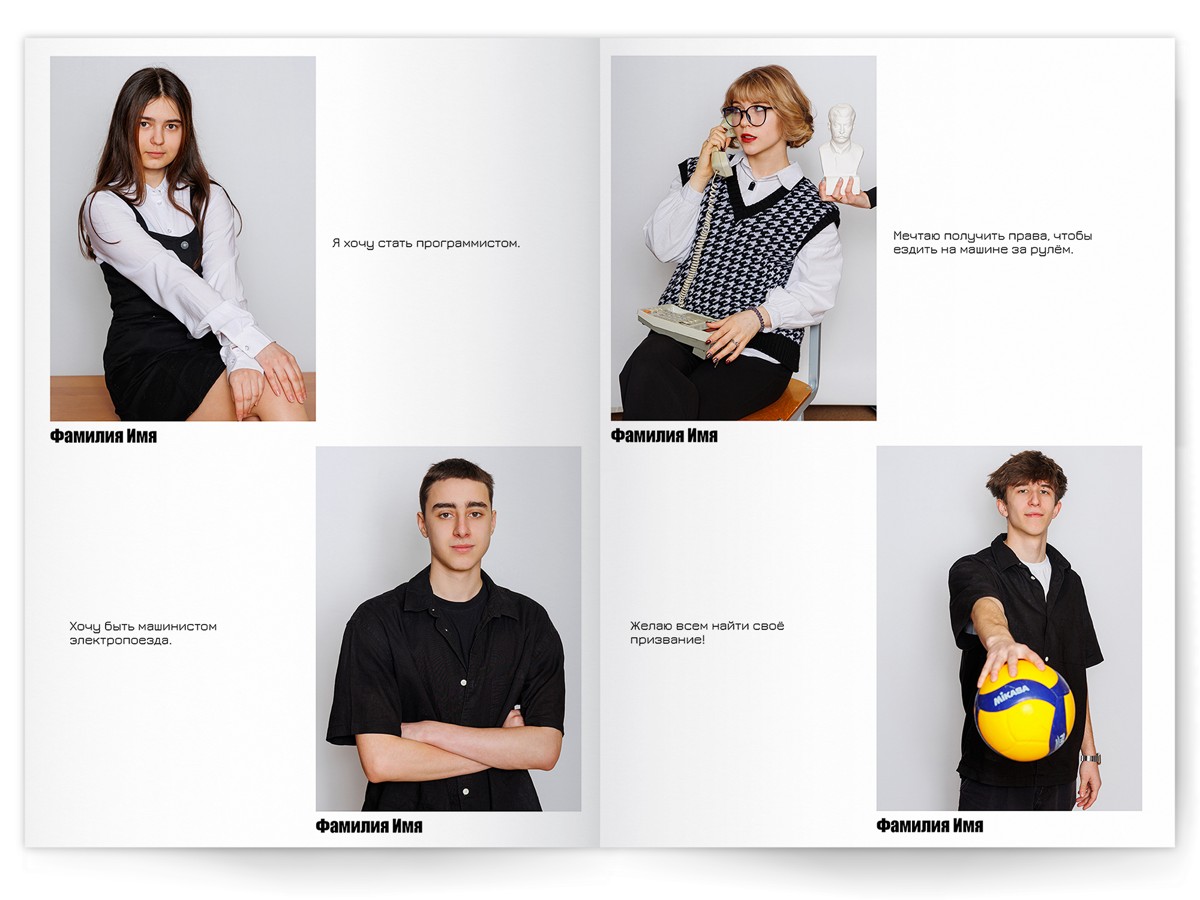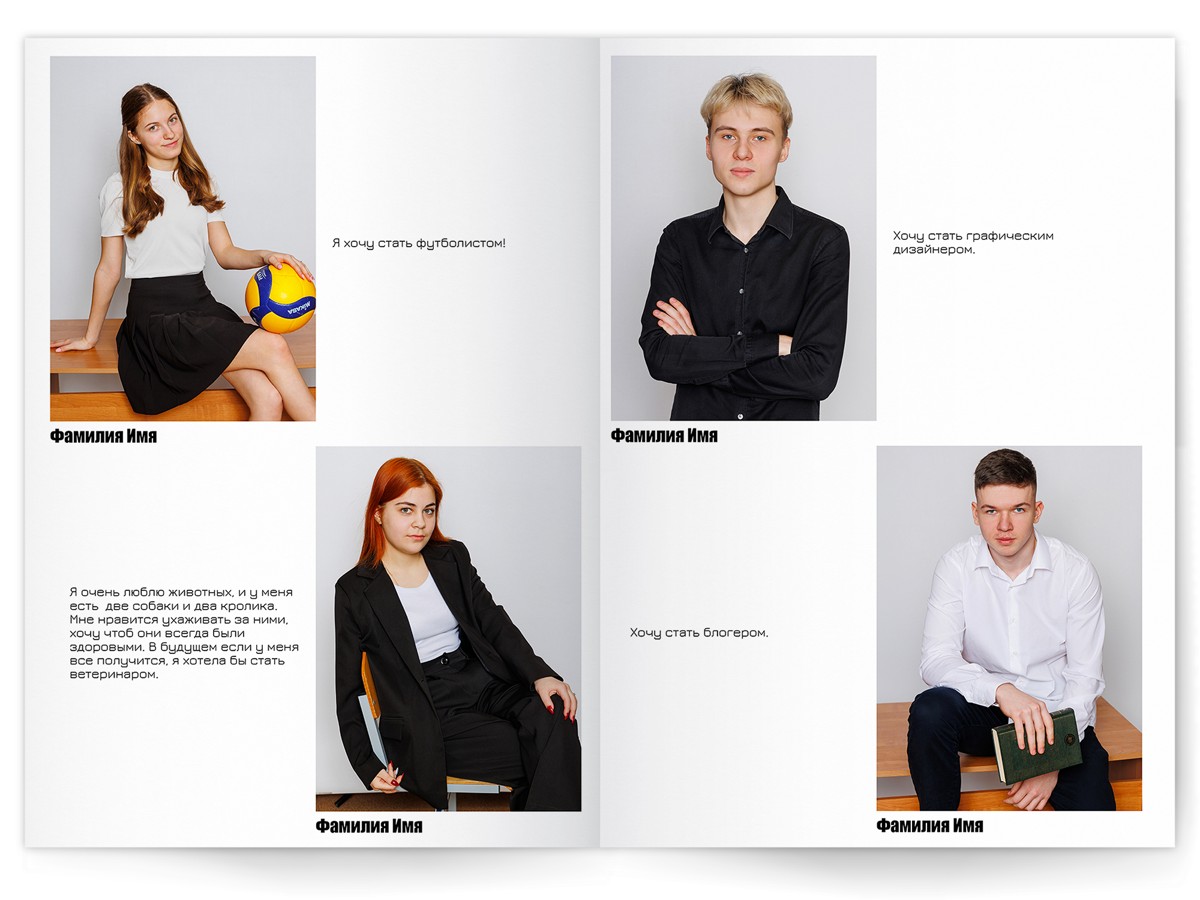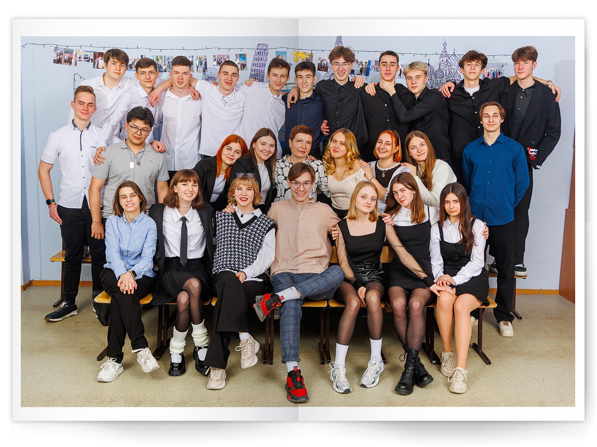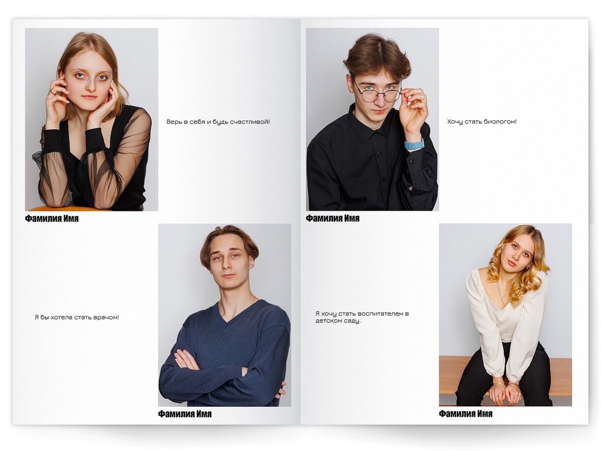 - Портреты всех одноклассников на развороте
