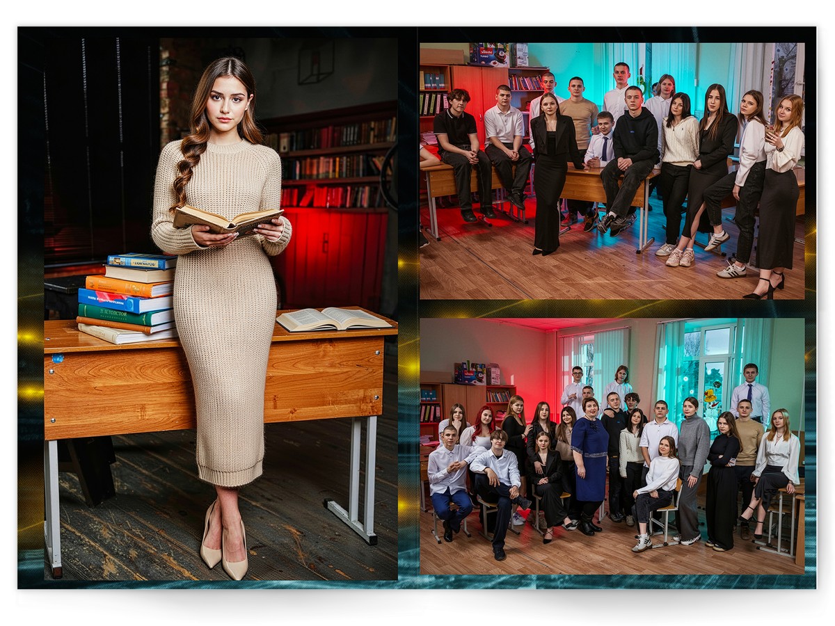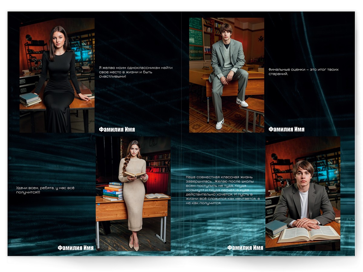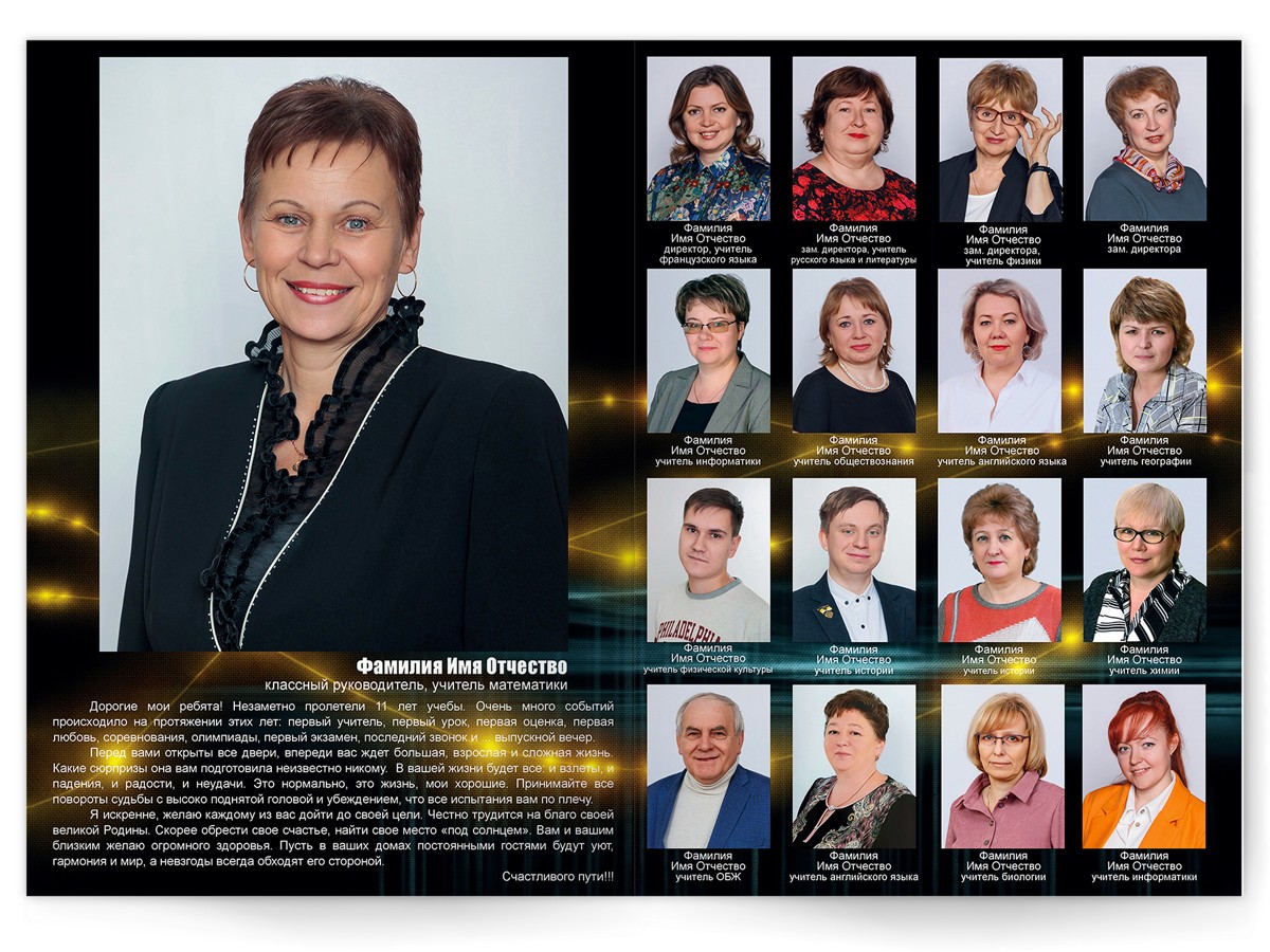 - Портреты всех одноклассников на развороте